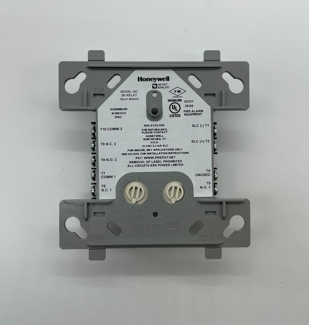 The Silent Knight SK-RELAY module is a relay module with an addressable feature designed for use in conjunction with Honeywell Silent Knight Series fire alarm control panels (FACPs)